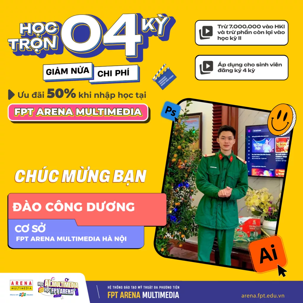 Ưu đãi học bổng 50% học phí từ FPT Arena Multimedia